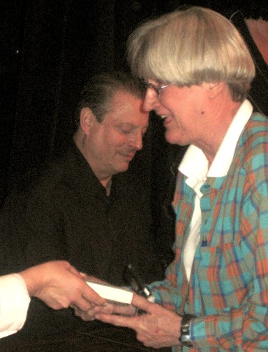 Here's a photo of Al holding up a copy of his book. Unfortunately (nudge nudge), the flash from the camera washed out the cover, so it looks like he's holding a completely blank book or sign.