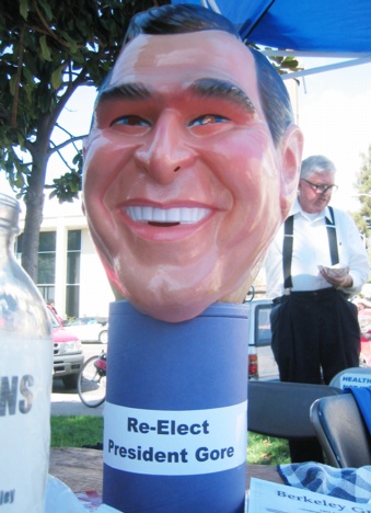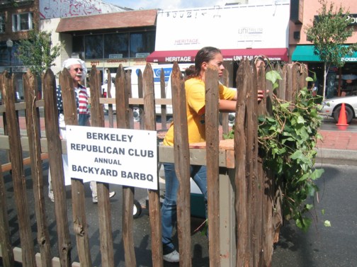 Real? Street theater? I never was able to figure it out. There are a few Republicans in Berkeley, though they're not easy to find. I wouldn't be surprised if there really was a Berkeley Republican Club. But was this really one of them -- or just an actor pretending to be one of those mythical creatures called "Republicans"? The jury's still out on this one.