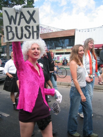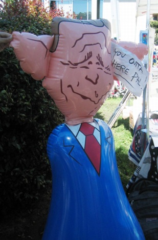 At the festival at the end of the parade, someone set up a Bush punching bag.