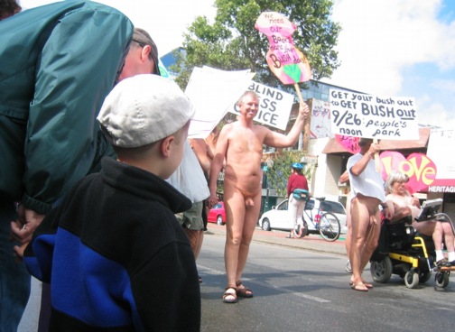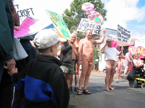 A group of clothing-challenged persons followed closely behind.