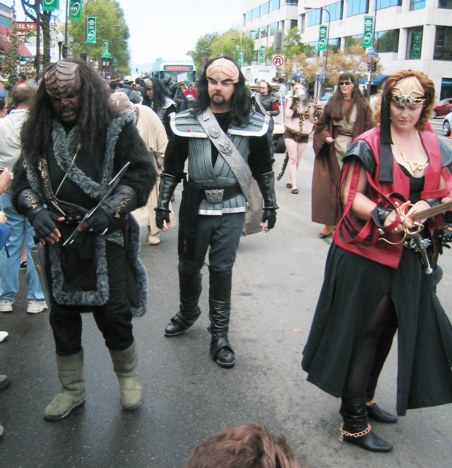 Too...fat...to walk...in parade. Must show off...Klingon outfit. Idea! Ride in...Earthling golf cart.