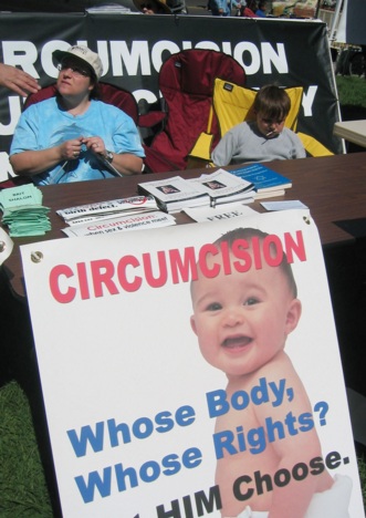 ...while another little boy was put on display at the anti-circumcision booth, to ensure that every molester in northern California could accurately visualize his private parts. Great parenting, Mom!