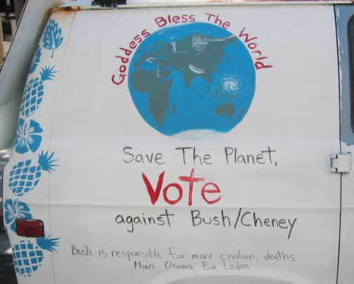 This same van was covered top to bottom with similar messages.