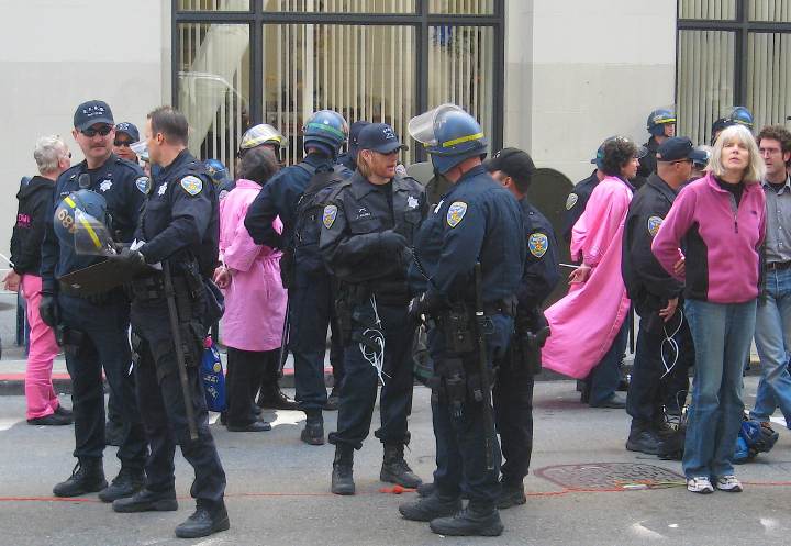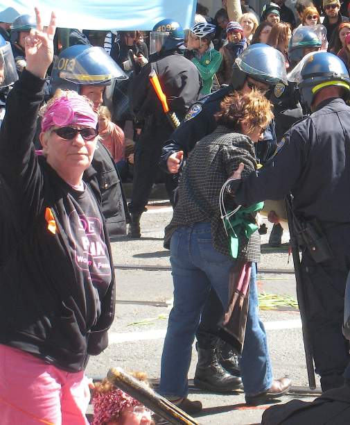 Code Pink, under arrest! A scene that will gladden many hearts around the country.