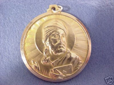 In modern Iran it is not uncommon to encounter -- either on posters or as framed pictures -- Islamic religious icons depicting Mohammed as a comparatively young bearded man with a green turban, usually clutching a Qur'an. Some of these icons have found their way online; the source for most of them, including the one shown above, is this authoritative page posted at the University of Bergen site (original Norwegian-language version here) which displays and describes religious posters and images purchased by Norwegian scholar Ingvild Flaskerud in Qum, Iran in 1999. The caption for the image shown here at the University of Bergen site says: