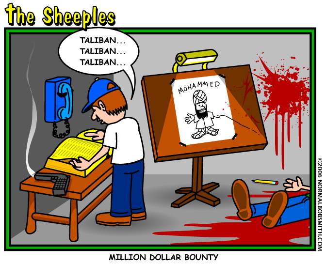 When the Taliban offered a reward to anyone who killed cartoonists who drew Mohammed, "Normal Bob Smith" created this interpretation of someone taking advantage of their offer.