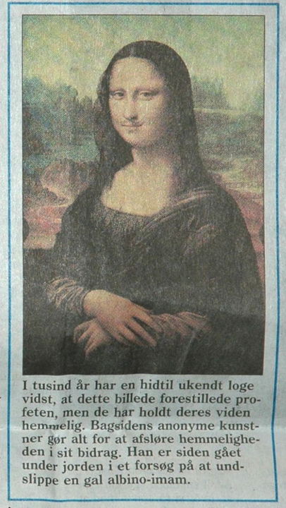 Prophet trees like the one shown in this picture are a popular subject. At the bottom of the trunk stands the name of the father of humanity and the first prophet: Adam. This is followed by the names of Islam's other prophets; Noah, Lot, Salih, Abraham, Joseph, Moses and Jesus, to name but a few. The tree is crowned by a large flower at top right. This is Muhammad. Beside his name: "The seal of the prophets and envoys (i.e. the last prophet): he was sent for all of humanity." (Purchased in Jerusalem.)Right-hand image: