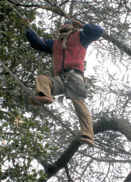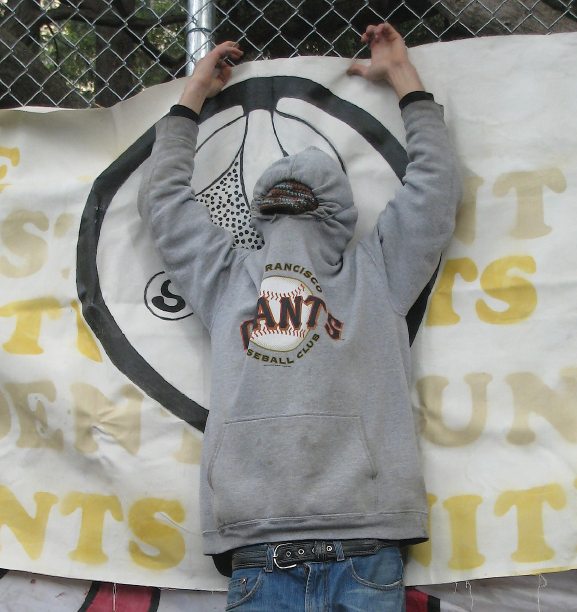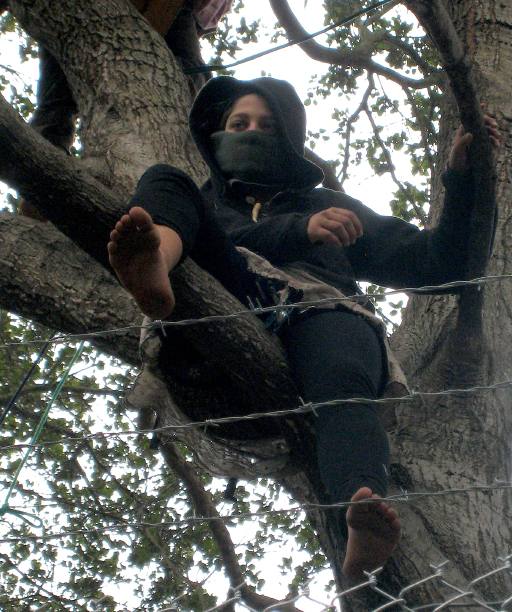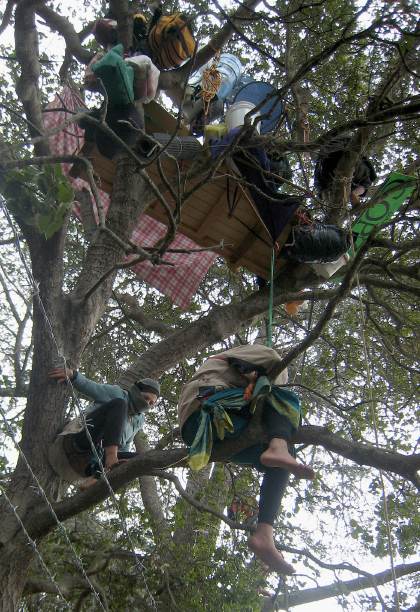 On December 2, 2006, several protesters climbed into the trees to "occupy" them as a way to prevent their destruction (even though there was and remains no imminent plan to cut them down, since the construction is being challenged in court). And since that day, these "tree-sitters" (as they have come to be called) have remained in the trees, becoming celebrities in the process.