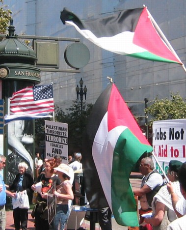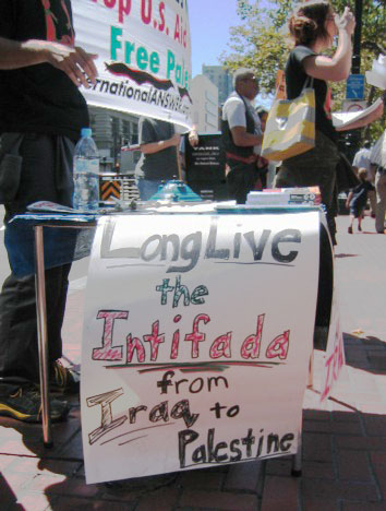 These photos were taken at the "Solidarity with Palestinian Prisoners" protest at Powell and Market streets in San Francisco on Sunday, August 29, 2004.