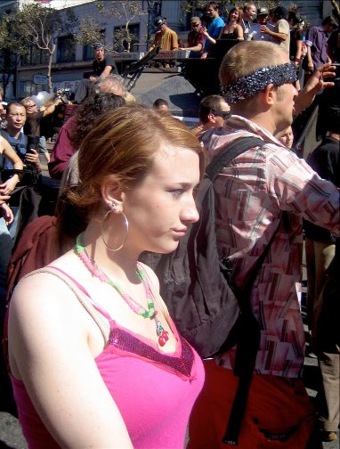 On Saturday, September 24, 2005 there were actually two major events in San Francisco happening practically at the same time: the anti-war rally, which started in the Mission District and wended its way to a park just a few blocks behind City Hall; and the Love Parade, which started near the Embarcadero, and made its way to the park in front of City Hall. In other words, there were two marches, each with about 20,000 people, heading right toward each other, but avoiding a head-on collision at the last moment. After following the anti-war march for a while, I headed over to check out how the other half celebrates.