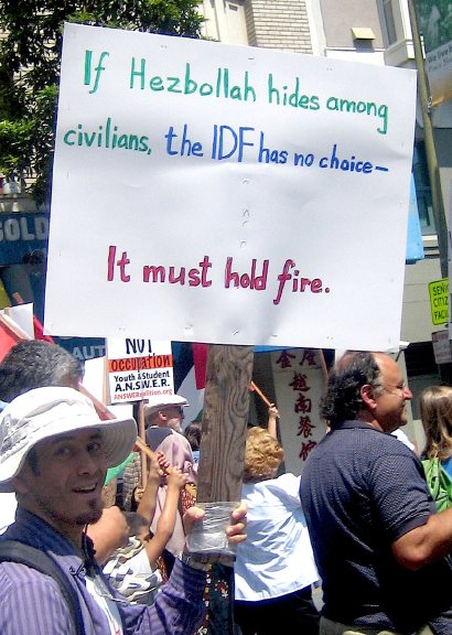 These photos were taken at the "Stop the U.S.-Israeli War" rally in San Francisco on August 12, 2006. It was one of several similar rallies held around the country on the same day.