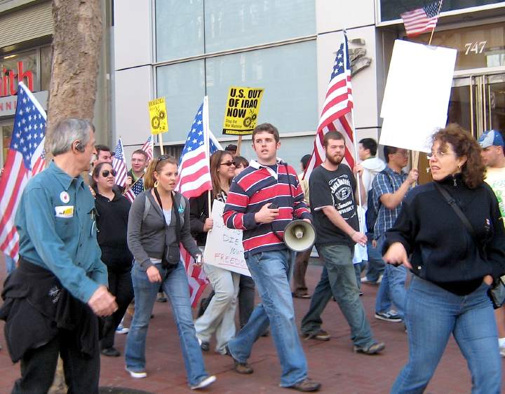 The rally -- which started at the Embarcardero and continued down Market Street to Civic Center -- coincided with the fourth anniversary of the beginning of the war in Iraq.