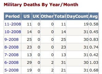 125 Shot Dead In Chicago Over SummerWhat more need be said? Of course every death and injury of a U.S. soldier is a tragedy and I would wish to see a long string of zeros on that chart over the upcoming months. But being stationed in a nation and a region that has a long history of hostility to the U.S. and an equally long history of violence means that our troops will always face some danger there. Yet "danger" does not equal "war." Whatever lingering violence still exists is Iraq is now nothing more than a series of disconnected terrorist attacks, which have become completely ineffectual in changing the hearts and minds of the populace, or re-igniting another civil war. [Update: As of March 3, 2009, if you click on the same official casualty statistics link as above, in the subsequent three months, the number of casualties in Iraq remained at extremely low bare-minimum levels, conclusively confirming that this "trend" is now a permanent state of affairs.] Columnist Ed Morrissey on November 19 points to another kind of benchmark which indicates the war's end: the fact that the Iraqi government in now engaging in infrastructure building projects that would only be possibly in peacetime: Victory in Iraq: The Baghdad MetroWho gets to decide when it's over? Indeed, everywhere you look, someone has highlighted yet another detail which, cumulatively, demonstrate that "peace has broken out all over" Iraq. Each person has their own criteria as to when the war was won: Some say we won the war long ago when we defeated the Iraqi Army in three weeks. Some say we won when the Iraqi government tried and executed Saddam Hussein. Some say we won when Iraqis voted democratically to elect their own leaders. Some say we won when we established control over the entirety of the country last year, eliminating the last remaining insurgent strongholds. Some say we won six months ago when the last remaining organized resistance evaporated. On the other hand, there are those who are saying (in response to this essay) that we have not reached that magical benchmark. The Iraqi parliament may have passed the security agreement solidifying Iraq's post-war stability, but some people say we should wait until the U.S. Senate approves it before we declare victory. Others say that the war won't be won until casualty levels literally drop to zero. Other say we haven't won until all troops are gone from the country. Others wait in vain for an official announcement. There is no consensus. And there never will be. Still, the cut-off point between "war" and "not war" has to be drawn somewhere, and if we don't draw the line ourselves, I guarantee it will NEVER be drawn. Because the Left and the media want to make sure that even ten years from now, when perhaps one US soldier is killed per year in an otherwise completely stable Iraq, that still won't qualify as "victory." Because their overarching goal is to to make sure that the war goes down in history as a defeat, no matter what. My opinion is: This is as good a time to declare victory as we're ever going to get. All signs point to "Yes." If you don't agree, that's perfectly fine, you can ignore this essay. But if you think this is long overdue, then climb on board. If we won, why are there troops still in Iraq? Does our victory mean that I advocate the immediate withdrawal of all troops from Iraq? No. Wars may be won but postwar occupations generally don't end crisply and cleanly like that. Troops often stay around to rebuild or to maintain the peace for years, even decades. Hell, the United States still has several military bases and many troops "occupying" Japan and Germany who have been there continuously since the end of World War II in 1945. We have two major Air Bases in Korea leftover from the Korean War. The Guantanamo Bay Naval Base in Cuba is a remnant of the Spanish-American War and has been there for over a century; the U.S. military also "occupied" the Philippines at Subic Bay for nearly a hundred years as a result of the Spanish-American War. More recently we continue to have a presence in Bosnia at Tuzla Air Base as a consequence of our role in the Bosnian War of the 1990s. What all this means is that it is standard practice in the aftermath of nearly every overseas war in which the U.S. participates for us to keep some troops there on a permanent or semi-permanent basis. Do I advocate that the domestic government of Iraq continue to assume more and more of a role in its own defense and internal security? Most definitely yes. Do I wish to see U.S. troops going on fewer and fewer patrols and handing over more and more duties to the Iraqi army as time goes by? Yes. Do I wish that there would never be another suicide bombing in Iraq by demented jihadists seeking futilely to destabilize the country? Of course. Do I wish that there would never be another act of violence in Iraq? Naturally. But these things take time. So, even though the war is over, American troops are likely to stay on the ground in Iraqi bases in some capacity for quite some time -- months, years, possibly even decades if circumstances warrant. But yes, eventually many troops will have to start coming home one way or the other. I am not opposed to an incremental "drawdown" of forces as responsibilities diminish -- which has already started to happen under the Bush administration and will likely continue under an Obama administration. What I do oppose is a reckless immediate evacuation of all American troops in Iraq as some sort of political "reward" from Obama to his antiwar supporters. That would send the wrong message to Islamic extremists around the world that the Americans were somehow "driven from Iraq," which would not actually be the case. Even if we did leave Iraq entirely, it would be in victory, not as a retreat. Since our troops did in fact win the war, they ought to have a victory parade or national celebration upon returning. But I suspect that, as has been happening up until now, 