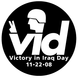 On this November 22, 2008, join us in observing Victory in Iraq Day. Let us honor the sacrifice, dedication and sheer determination of American, coalition and Iraqi troops who have brought freedom to the nation and people of Iraq. Although our governments have chosen to not name any official day marking the end of this war, we the people have taken it upon ourselves to commemorate November 22, 2008 as the day of victory over the forces of tyranny, oppression and terror in Iraq. Join fellow bloggers and other members of the public in this virtual ticker-tape parade for our brave troops, to celebrate their success, to remember the fallen, and to declare, in the words of President John F. Kennedy (RIP): You may comment on VI Day here. Click on the following links to see a few of the best, most informative and most heartwarming Victory in Iraq Day posts from around the world: Gateway Pundit Confederate Yankee Buuuuurrrring Hot The Surfing Conservative Stop the ACLU Gegenkritik Theodore's World Public Secrets The Wide Awake Cafe Winefred's Well Lighthouse on the Right The Cool Blue Blog Raja Rants The Blog of Record Fearless Dream Macker's World No Clever Pseudonym Paul Ibrahim Join the VI Day movement! Do you agree with the concept behind VI Day? Then post a VI Day entry on your blog. Once you've posted it, email me the link! And I will post a link back to your blog here on this page. Make sure to make at least two different postings: Make one now to announce your support of VI Day and to spread the word ahead of time; and make another one on November 22 itself, to celebrate! (Blogs of all political orientations are invited to join: Even if you're a progressive blogger and only want to announce an end to the war as a way to accelerate the homecoming home all troops, you are welcome to link to and/or mention VI Day too.) One last note: If anyone is planning to hold a "meatspace" (i.e. real world) party or celebration to mark VI Day, send me the details and I will post them here as well. Here is the official list of blogs that have so far agreed to mark VI Day on November 22, 2008: Victory in Iraq Day: Participating Blogs |