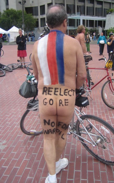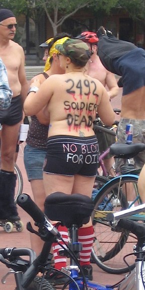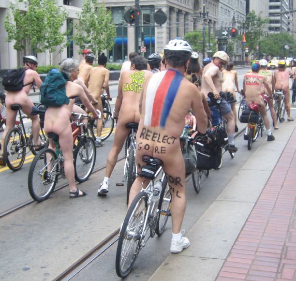 June 10, 2006 was the date for the World Naked Bike Ride, which -- as its name suggests -- is an international political event at which protesters take off all their clothes and ride bicycles through various cities around the globe.