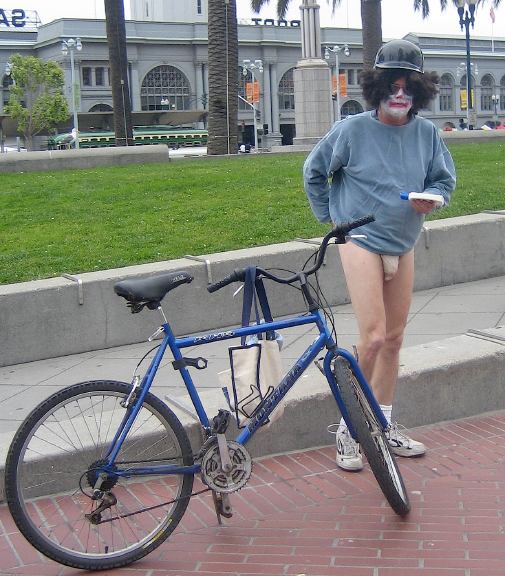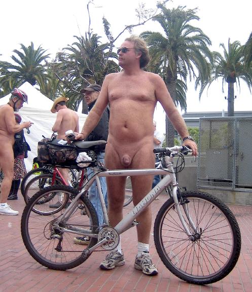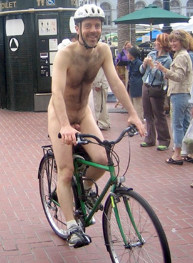 The guy was an advocate of the "off to the side" technique of nude bike riding.